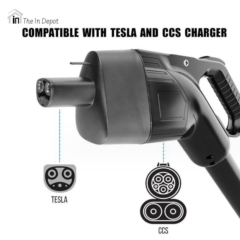 ACCESS PUBLIC CCS FAST CHARGERS: CCS1 to Tesla adapter Offered by The In Depot Online, is a safe and dependable solution with perfect compatibility with any CCS charger, allowing you to safely charge your Tesla at public DC Fast Charging stations, lets you charge your Tesla at over 10,000 CCS1 fast chargers nationwide